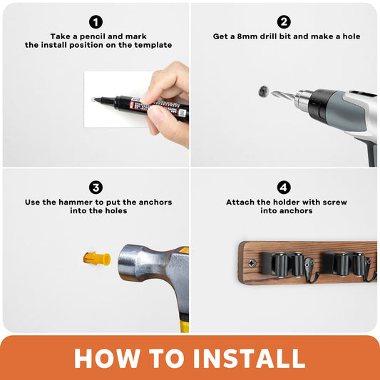 IMILLET 2 Pack Mop and Broom Holder, Wall Mounted Organizer Mop and Broom Storage Tool Rack with 5 Ball Slots and 6 Hooks (Black)