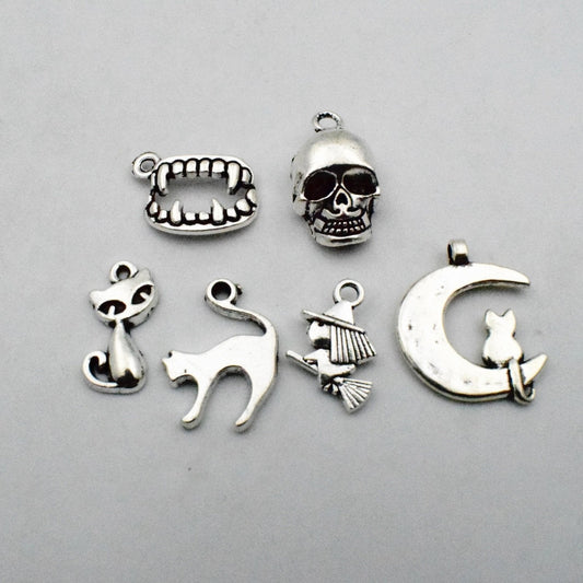 iloveDIYbeads Halloween Charm-100g(about 55-60pcs) Antique Silver Halloween Collection Craft Supplies Charms Pendants for Crafting, Jewelry Findings Making Accessory For DIY Necklace Bracelet (M001)
