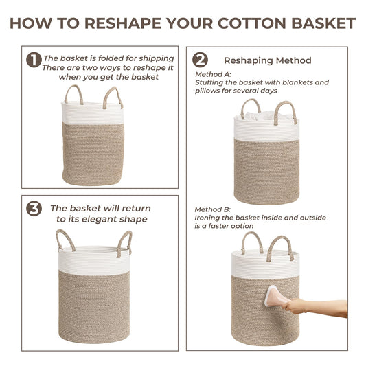 INDRESSME Extra Large Woven Baskets for Storage, 21.7'' x 13.8'' Wicker Basket with Handle for Blankets, Big Laundry Baskets for Clothes, Pillows, Towel, Shoe Basket for Entryway, 90L White Jute