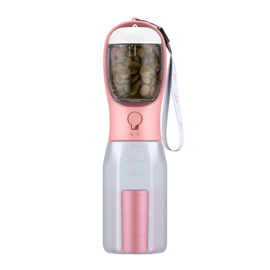 Innoshopp Dog Water Bottle - Portable Pet Water Bottle with Food Container & Poop Bag Dispenser - Lightweight, Leak Proof & BPA Free Dogs Drinking Bottle for Walking, Hiking & Travel (Pink)