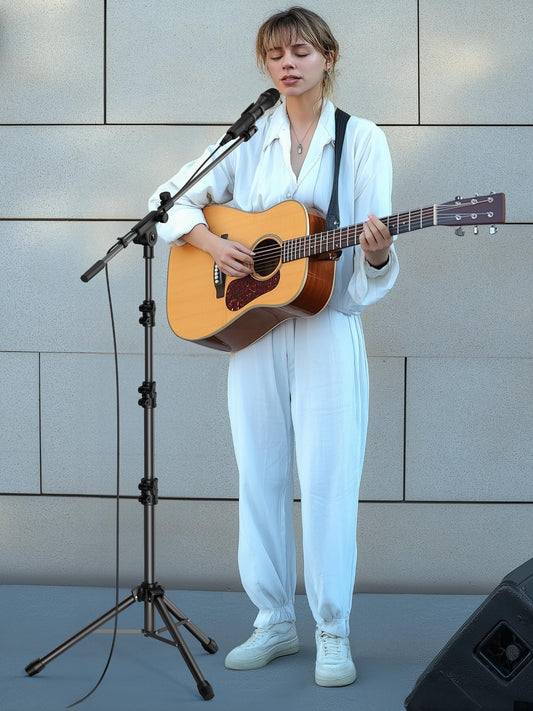 InnoGear Microphone Stand, Tripod Boom Arm Floor Mic Stand Height Adjustable Heavy Duty with Carrying Bag 2 Mic Clips 3/8" to 5/8" Adapter for Singing Podcast for Blue Yeti Shure SM58 SM48 Samson Q2U