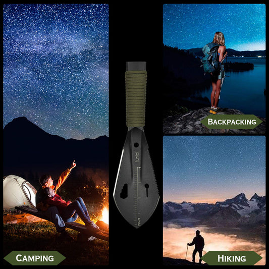 iunio Hiking Trowel, Camping, Backpacking, Portable Shovel, Multitool, Ultralight Camp Tool, with Carrying Pouch, for Gardening, Outdoor, Survival (Black)