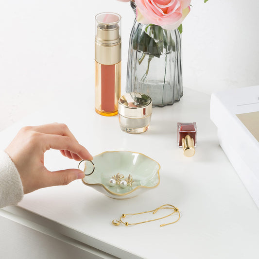 Jewelry Dish Tray, Ring Dish, Ceramic Trinket Tray, Key Bowl, Decorative Plate, for Friends Sisters Daughter Mother(Light Green)
