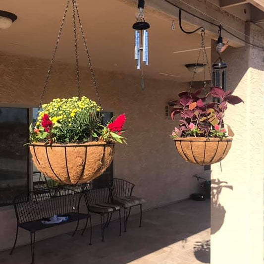 JFFLYIT Metal 10 inch Round Planter, 4 Pack Hanging Wire Basket with Coco Fiber Liners, for Outdoor Plants Decoration