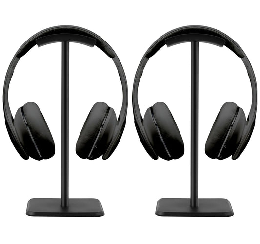 JIKIOU Headphone Stand Gaming Headset Holder Universal Aluminum Metal Headphones Holder Hanger with Aluminum Supporting Bar Flexible Headrest ABS Solid Base for All Headphone 2 Pack (Black)
