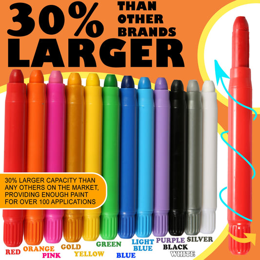 Jim&Gloria Water Based Face Paint Sticks Bulk 32 Professional Face Painting Kit for Kids Party, Metallic, Neon, Classic Facepaint Crayons, Washable Body Paint Adults Cosplay, Clown, Halloween Makeup