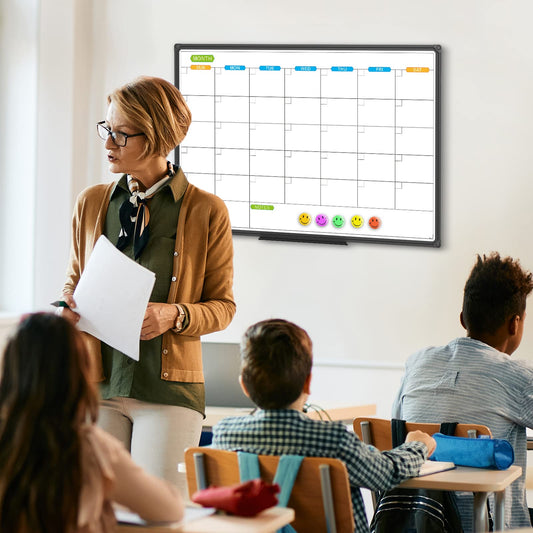 JILoffice Dry Erase Calendar Whiteboard - Magnetic White Board Calendar Monthly 36 X 24 Inch, Black Aluminum Frame Wall Mounted Board for Office Home and School