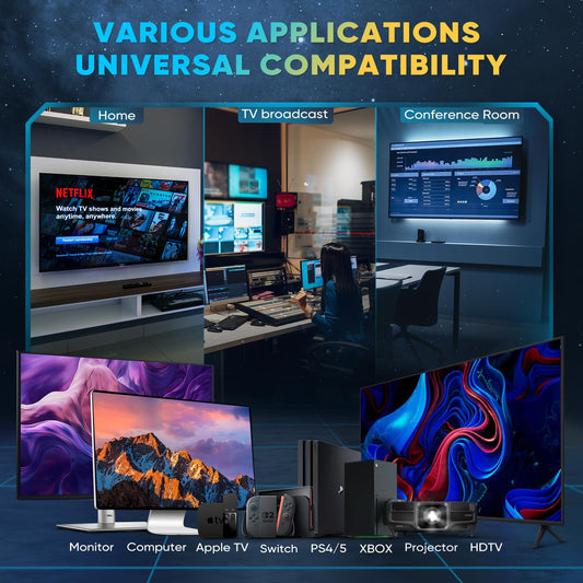 10K 8K HDMI Cable, 1.5FT, 3.3FT, 6.6FT, 10FT, 16FT, 20FT, 25FT Heavy Duty High-Speed Braided HDMI Cable, Professional HDMI Cord, 48Gbps, 4K@120Hz, 8K@60Hz, HDR, DTS:X, HDCP 2.2/2.3