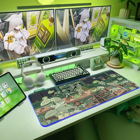 JMIYAV Little Frog RGB Green Gaming Mouse Pad 31.5x12 Inch PC XL Large Glowing Led Light Up Desk Pad Non-Slip Rubber Base Computer Cute Mousepad Mat Desk Accessories Gaming Setup 31.5x12 Inch