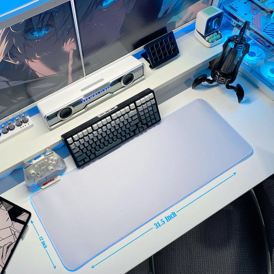 JMIYAV White Gaming Mouse Pad RGB Mousepad Non-Slip Rubber Base Extra Large Cool XL XXL Computer Desk Pad Gaming Accessories LED Light Up Extended Big Mouse Pad for Gamer (31.5x12In) Upgrade