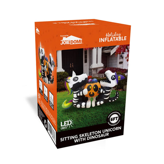 Joiedomi 6 ft Long Halloween Inflatables Outdoor Decorations, Blow Ups for Yard Decorations, Sitting Inflatable Skeleton Unicorn and Dinosaur Hold Pumpkin for Outside Halloween Decor