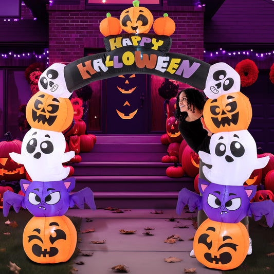 Joiedomi 8 FT Cute Halloween Inflatables Pumpkin Archway Outdoor Decoration, Archway Halloween Blow Up for Yard with Build-in LED Lights, Inflatable Arch Yard Outside Pumpkin Decor for Party, Garden