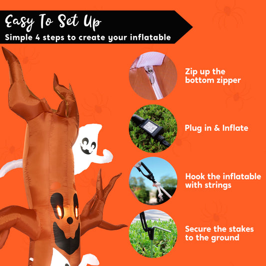 Joiedomi 8 FT Halloween Inflatable Scary Tree with Ghost Decorations, Pumpkin and Tombstone, Blow Up Inflatables with Build-in LEDs for Halloween Party Indoor, Outdoor, Yard, Garden, Lawn Decorations