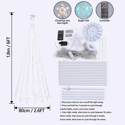 Joomer Christmas Tree Star Lights, 6FT 265LED Smart Orange Purple Light with Remote Timer Music Sync Bluetooth App Controlled RGB Color Changing Lights for Christmas Halloween Decoration