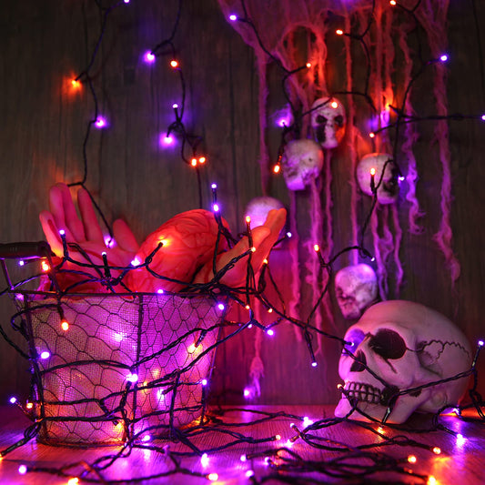 Joomer Orange Purple Halloween Lights, 100FT 300 LED String Lights with 8 Modes Timer Waterproof Plug in Indoor Outdoor String Light Connectable for Halloween Decorations