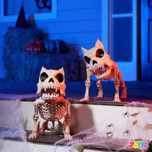 JOYIN 2 PCS 16" Poseable Dog Skeleton Halloween Decoration Animal Puppy Plastic Bones with Posable Joints for Prop Indoor Outdoor Decor Spooky Scene Party Favors Graveyard Decorations