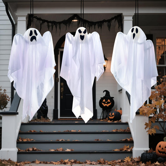 JOYIN 3 Pack Halloween Party Decoration 27.5" Hanging Ghosts, Cute Flying Ghost for Front Yard Patio Lawn Garden Party Décor and Holiday Decorations