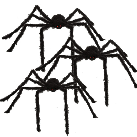 JOYIN 3 Pcs Halloween Spiders Outdoor Decoration, Halloween Decor Outside, 5 Ft Large Hairy Giant Multi Color Spider Set for Yard Lawn Porch Decor Indoor Haunted House Scary Prop(59″Black)