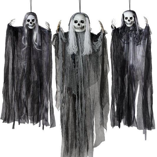 JOYIN 3 Pack Hanging Halloween Skeleton Ghosts Decorations, Grim Reapers for Best Halloween Outdoor Decorations