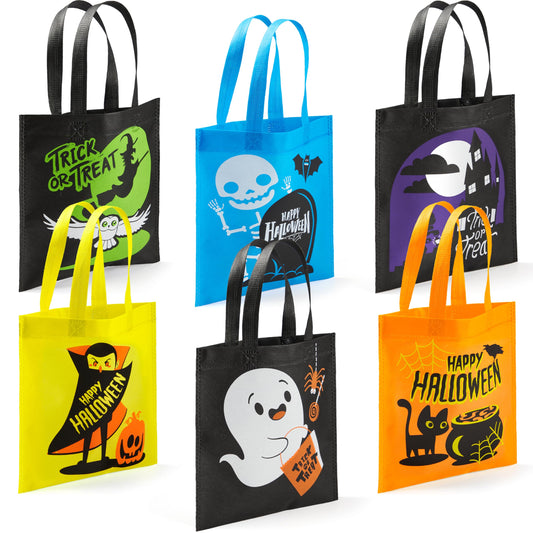 JOYIN 32 Non-Woven Halloween Tote Gift Bags Colorful for Kids, 6 Patterns Design Trick or Treat Bags for Kids Classroom Party Favor Supplies, Reusable Goody Candy Bag, Halloween Snacks Goodie Bag Bulk