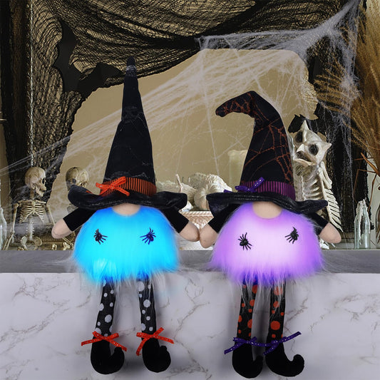 Juegoal 2 Pack Halloween Tabletop Decorations, 17" Lighted Plush Gnomes with Dangling Legs, Light Up LED Color Changing Elf Holiday Present, Figurine Gifts Housewarming Halloween Festival Table Decor