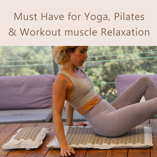 Acupressure Mat & Pillow Set with Hot/Cold Gel Pack for Back and Neck Pain Relief, Sciatica and Pressure Point Aches - Ideal Acupuncture Mat for Sleeping Aid & Workout Recovery (Natural Linen)