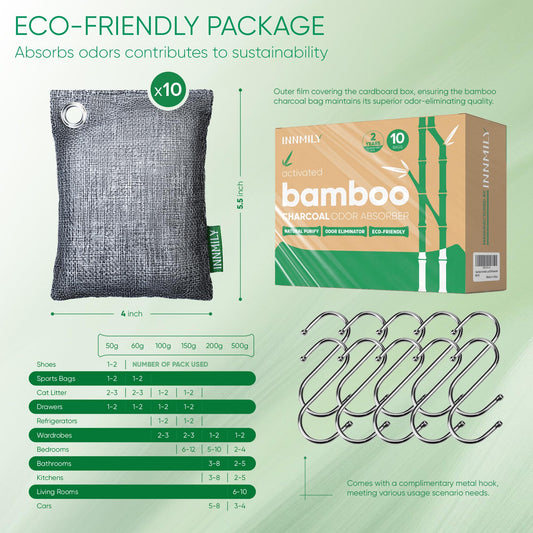 Activated Charcoal Odor Absorber, Odor Eliminator for Strong Odor,Bamboo Charcoal Air Purifying Bags for Home Car Closet Pet, Smoke Room Deodorizer (10 x 100g, Unscented)