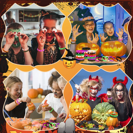 JUNEBRUSHS 64pcs Halloween Party Favors Silicone Bracelets Rubber Wristbands for Halloween Party Trick or Treat Goodie Bag Stuffers Fillers Decorations Accessories Supplies(8 Designs)
