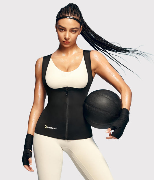 Junlan Sauna Suit for Women Waist Trainer Vest for Women Sweat Tank Top Shaper for Women with Zipper (Black, Small)