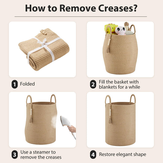 Jute Woven Rope Laundry Hamper, Tall Laundry Basket for Blanket Storage, Large Dirty Clothes Hamper for Toys, Decorative Baby Nursery Hamper for Bedroom, Living Room - Jute Brown, 58L