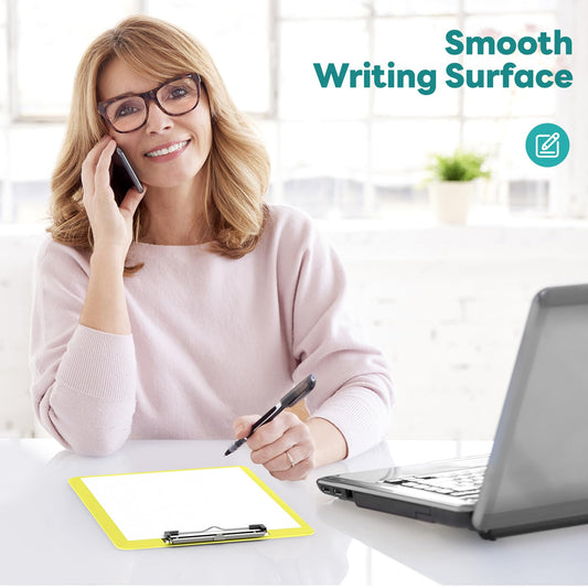Juvealoe A4 Plastic Clipboard, 8.5 x 11 Yellow Colored Clip Boards with Low Profile Clip, Letter Size for Classroom, Teacher, Students, School & Office Supplies