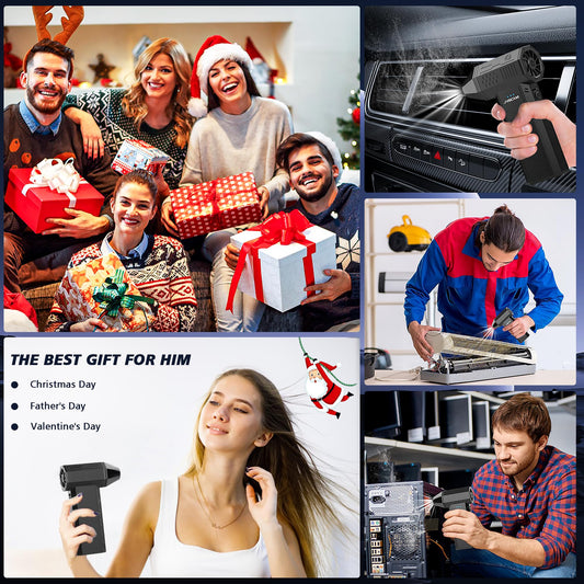 JVSCAM Compressed Air Duster - Electric Air Duster with Brushless Motor - 3 Gear Adjustable Cordless Air Blower - Rechargeable Air Duster for PC, Keyboard, Car, Outdoors, Home (X3)