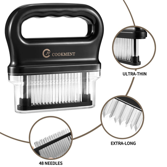 JY COOKMENT Meat Tenderizer with 48 Stainless Steel Ultra Sharp Needle Blades, Kitchen Cooking Tool Best for Tenderizing, BBQ, Marinade