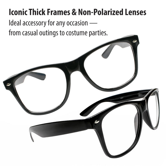 Kangaroo Black Fake Glasses - Classic Hipster Glasses Frames - Retro Clear Non Prescription Nerd Costume Eyeglasses for Men & Women for Halloween Cosplay