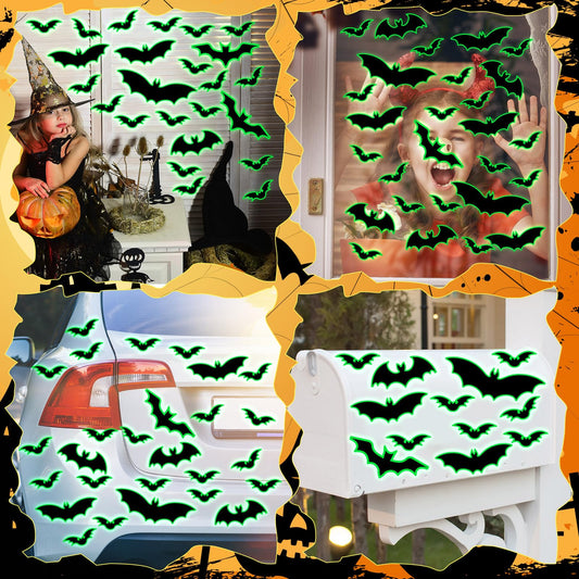Kanayu 32 Pcs Halloween Garage Door Decorations Magnets Glow in The Dark Black Bats Spider Garage Door Magnets Luminous Magnetic Stickers Halloween Decorations for Garage Door Car Refrigerator(Bat)