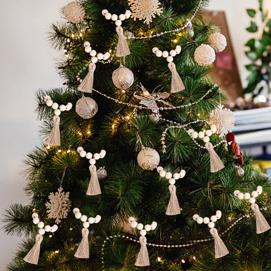 AEKAO Set of 12 Wood Bead Napkin Rings with Jute Rope Tassels for Christmas Farmhouse Wedding Home Dining Table Party Decoration
