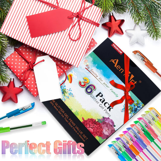 Aen Art Glitter Gel Pens for Adult Coloring Books, 36 Colors Gel Marker Set Colored Pen with 40% More Ink for Kids Drawing, Doodling, Crafts and Taking Note