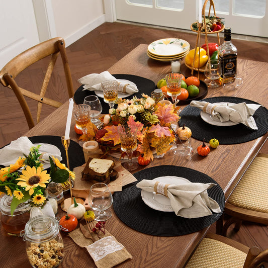 AHHFSMEI Round Braided Placemats 15 Inch Round Table Mats for Dining Tables Natural Woven Heat Resistant Place mats Set of 6 (Black)