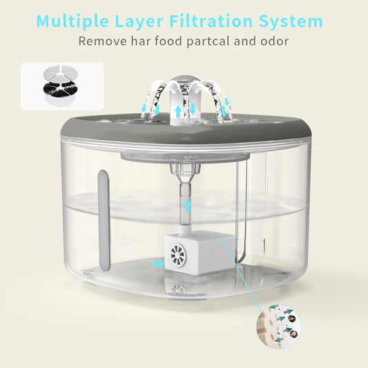 AIAUON Cat Water Fountain Ultra Quiet - 84oz/2.5L Cordless Automatic Water Dispenser for Cats, Water Bowl for Pets no Spilling, Cat Feeding & Watering Supplies with 3 Filters & Feeding Mat