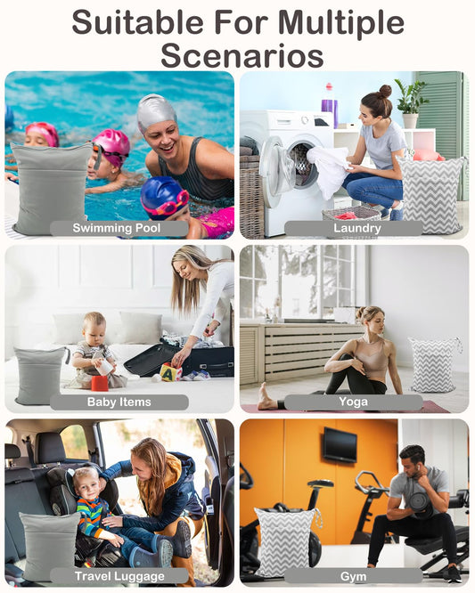 ALVABABY 2pcs Cloth Diaper Wet Dry Bags Waterproof Reusable with Two Zippered Pockets Travel Beach Pool Daycare Soiled Baby Items Yoga Gym Bag for Swimsuits or Wet Clothes L2933