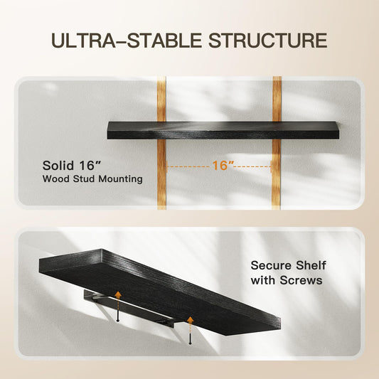 AMADA HOMEFURNISHING Floating Shelves for Wall, Wall Shelves for Living Room, Bedroom, Bathroom, Kitchen & Home Office Organization, Bathroom Shelves with Hidden Brackets, 22 lbs Max Load, AMFS44B