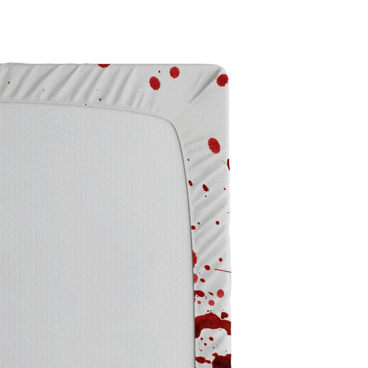 Ambesonne Horror Fitted Sheet, Splashes of Blood Grunge Style Bloodstain Horror Scary Zombie Halloween Themed Print, Soft Decorative Fabric Bedding All-Round Elastic Pocket, Queen Size, Scarlet White
