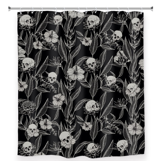 AMBZEK Black Skull Floral Shower Curtain 72Wx72L Inch Men Gothic Spooky Skeleton Goth Flower Leaves Halloween Cool Artwork Cloth Fabric Waterproof Polyester Bathroom Decor Set with 12 Pack Hooks