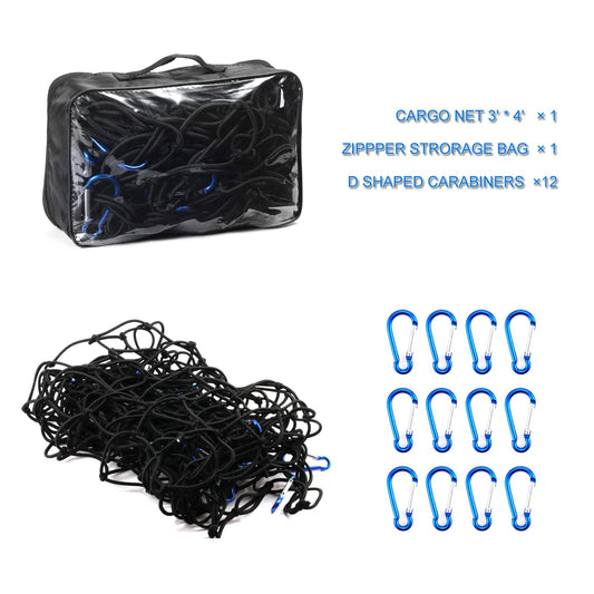 Amiss 3' x4' Stretches to 6' x 8' Truck Cargo Net, Roof Rack Cargo Net for Pickup Trucks SUV, Heavy Duty Truck Bed Cargo Bungee Net with 12 Blue Clips and Storage Bag, Car Exterior Accessories