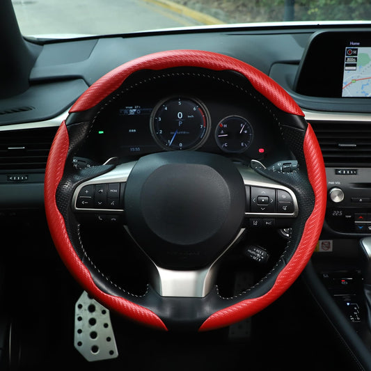 Amiss 3pcs Carbon Fiber Anti-Skid Steering Wheel Cover, Segmented & Butterfly Design, Universal 99% Car Wheel Cover Protector, Red