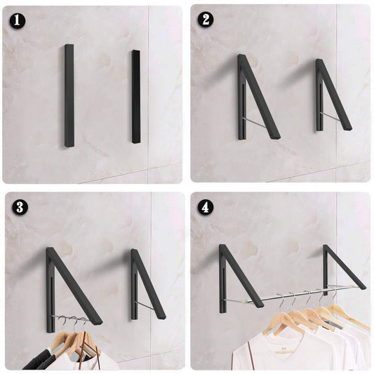 Anjuer Retractable Clothes Rack - Wall Mounted Folding Clothes Hanger Drying Rack for Laundry Room Closet Storage Organization, Aluminum, Easy Installation (Black)