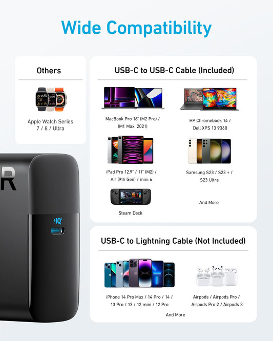 Anker MacBook Charger, Compact and Foldable 100W USB C Charger for MacBook Air, Samsung Galaxy, iPad Pro, and More, 5FT USB C Cable Included