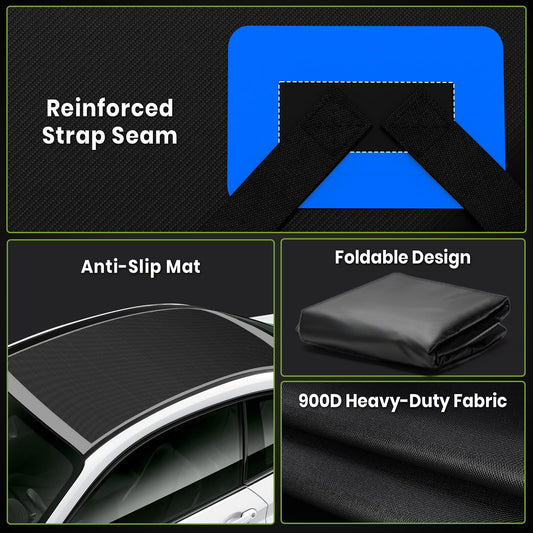 APTY 21 Cubic Feet Car Rooftop Cargo Bag Carrier, Soft Roof Top Luggage Bag for All Vechicles with/Without Racks - with Waterproof Zip, Luggage Lock, Anti-Slip Mat, Storage Bag, Door Hooks, Blue