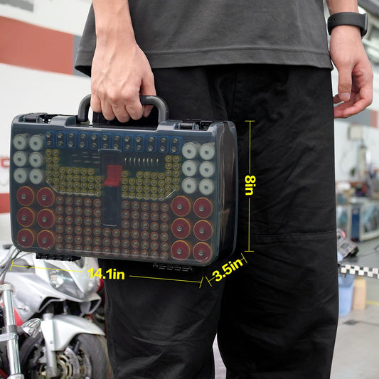 Aptbyte Battery Organizer Storage Holder Box Case with Tester- 269 Batteries Double-Sided Variety Pack, Holds AA AAA 4A C D Cell 9V 3V Lithium LR44 CR2 CR123 CR1632 18650 Button- Grey