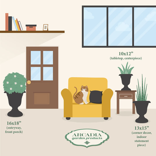 Arcadia Garden Products PL10BK Classic Traditional Plastic Urn Planter Indoor/Outdoor, 15" x 13", Black